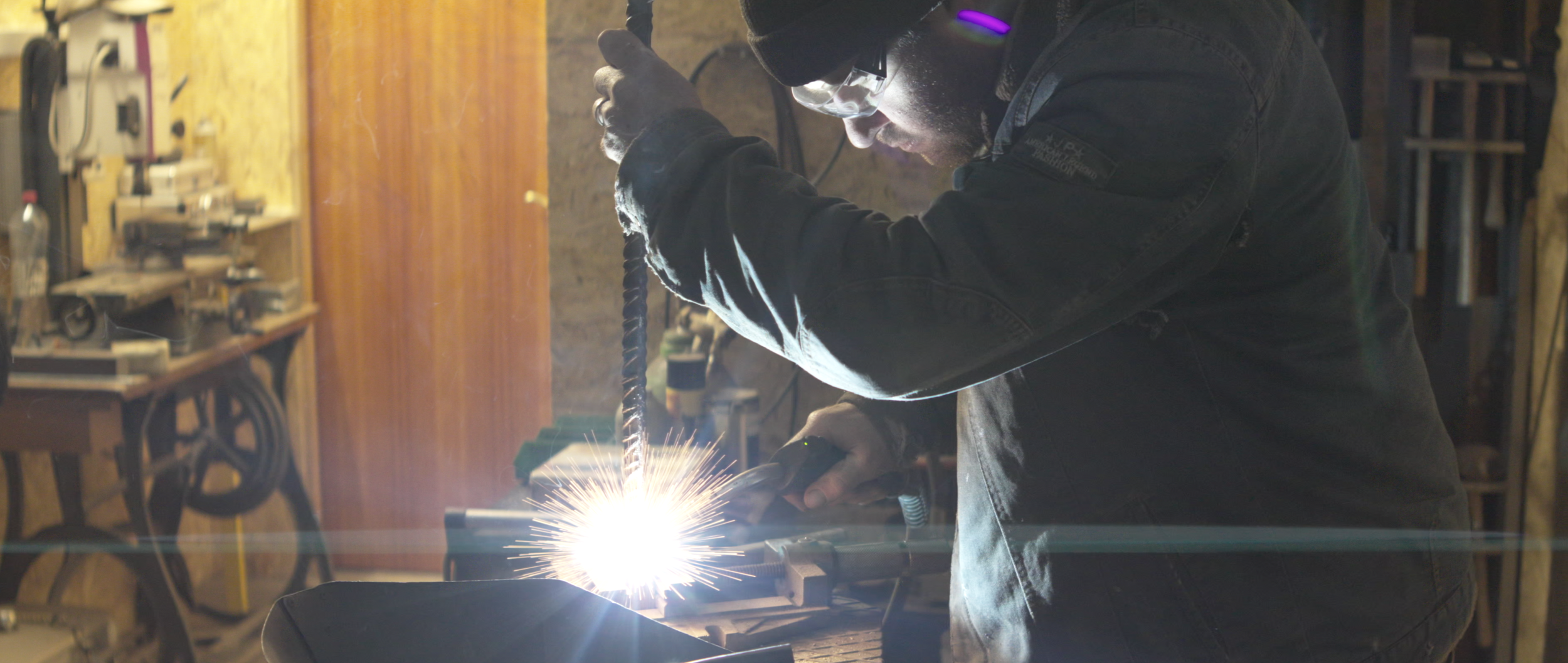 Intention — Focused, intense, visceral. This is the sensation of being present in Roger’s workshop, an Aladdin’s cave of blacksmithing tools that spark, burn, and shape raw metal into thoughtfully crafted design.
